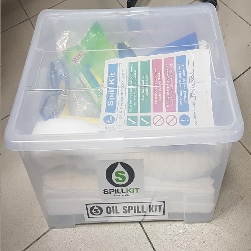- OIL ABSORBING SPILL KIT WITH STORAGE BIN AND LID OSK30L INCLUDES ABSORBENT PAD, ABSORBENT SOCKS